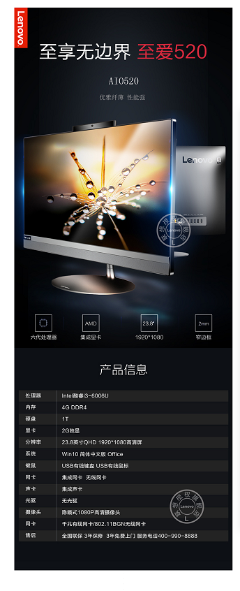 - 商品名稱:聯(lián)想(Lenovo) 一體機(jī)電腦 AIO 520-24 23.8英寸家用辦公臺(tái)式電腦:i3/8G/1T+128G 集顯銀